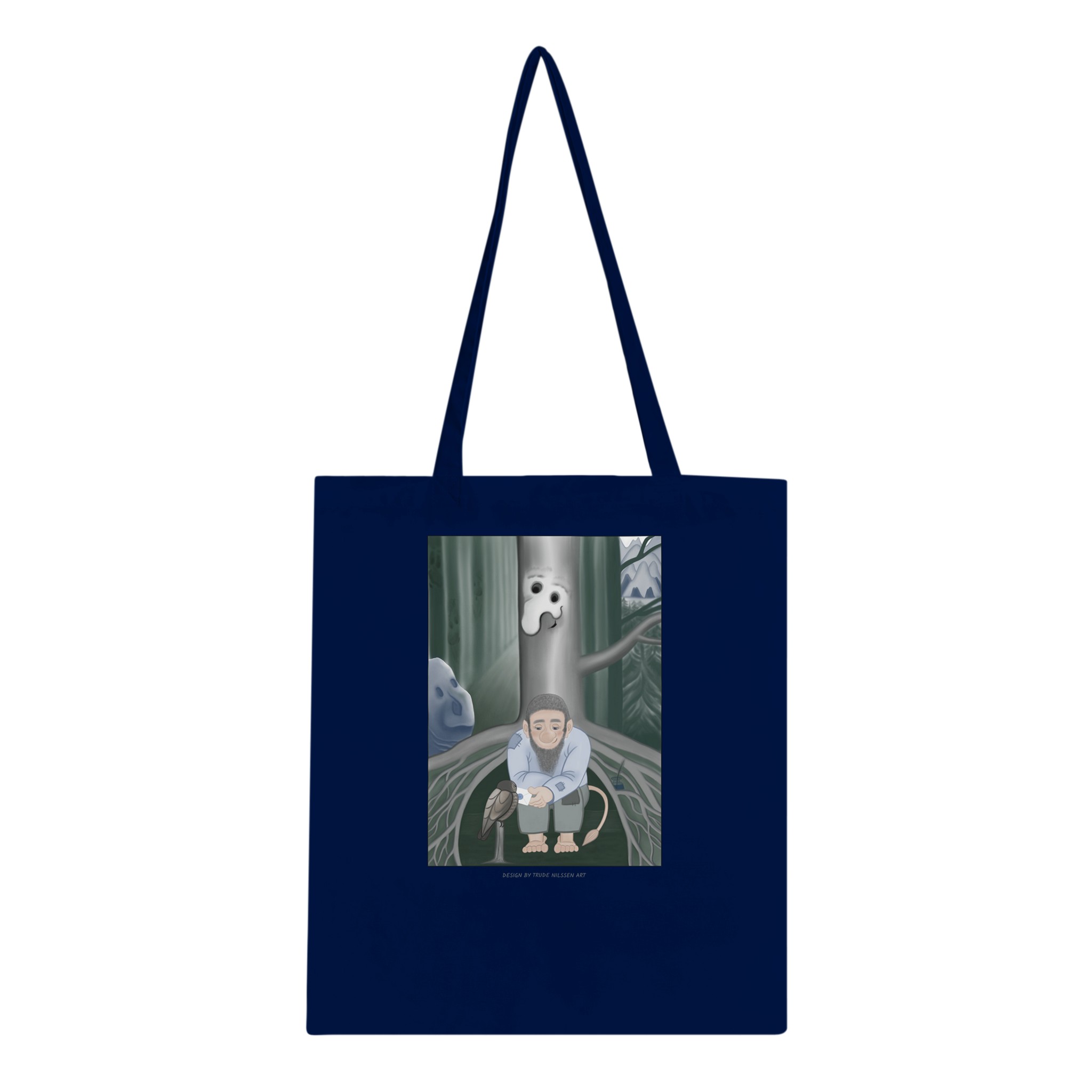 Handlenett / Håndarbeidsveske med kunsttrykk fra bildeserien “Trollskogen”. Motivet er tegnet digitalt.